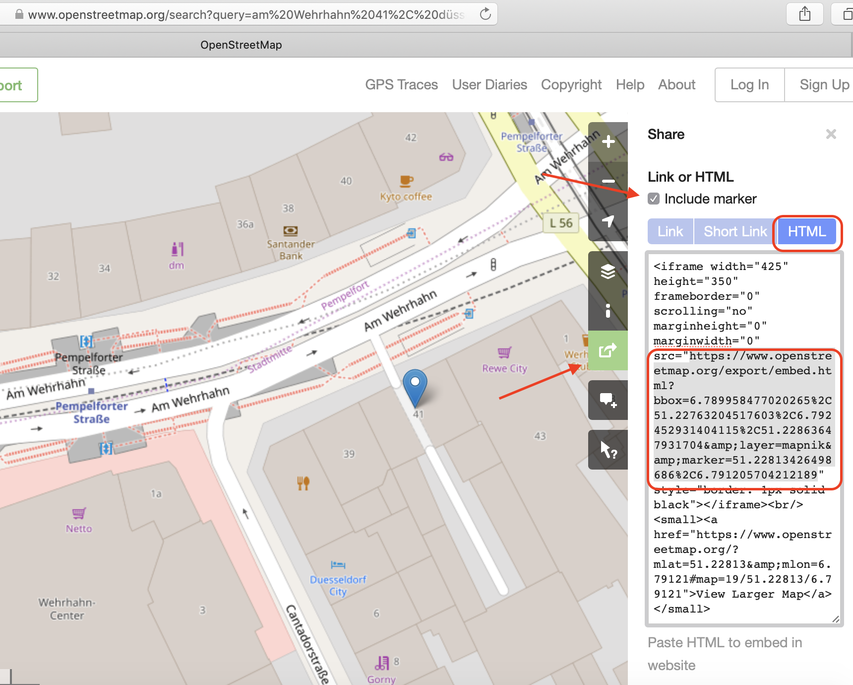In order to get the URL for an OpenStreetMaps map please use the following steps.