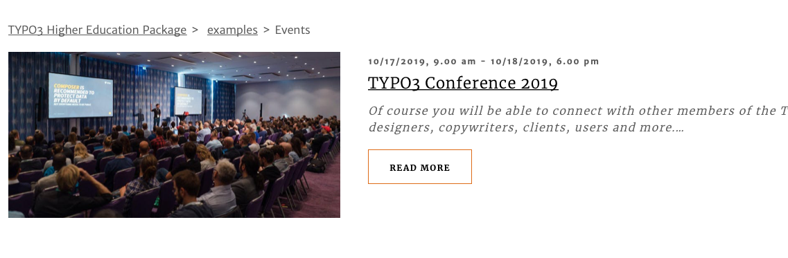 The template respects different cases of date constallations, for example if no end date is set, it’s not displayed and if a date is marked as “full day” no time information is displayed.